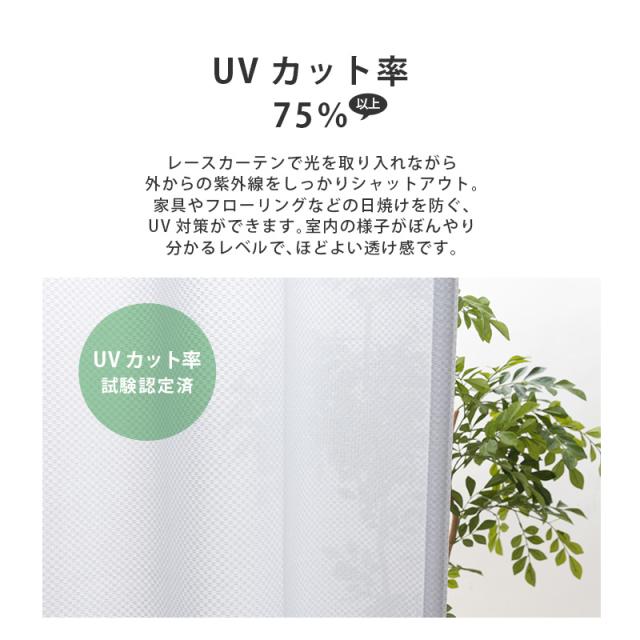 UVカット レースカーテン 幅200cm(1枚組)丈213〜238cm UVカット率75%以上 断熱 保温 シンプル ウォッシャブル 洗濯 既製 おしゃれ 新生活 サーブル UVカット レースカーテン 断熱 保温 ウォッシャブル 洗濯