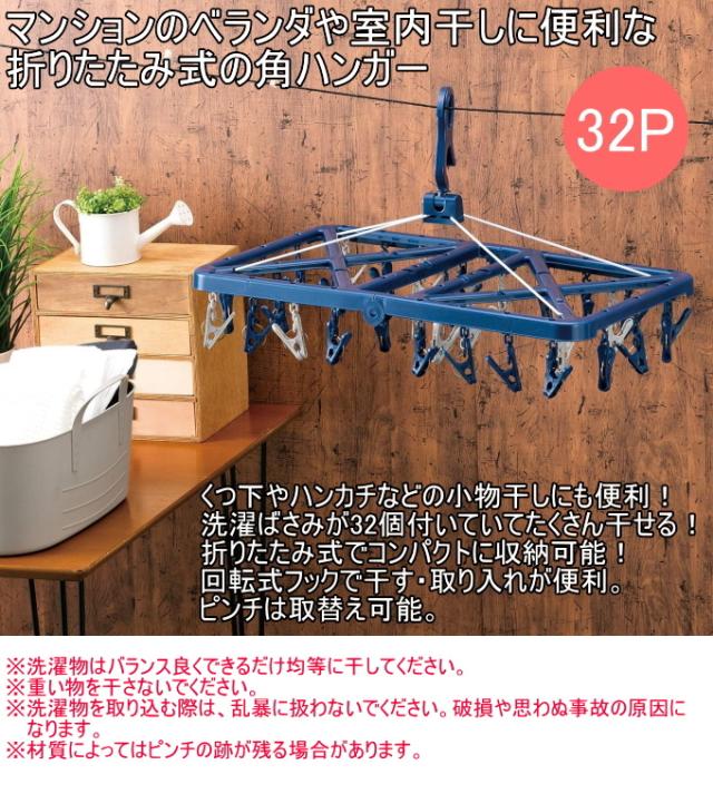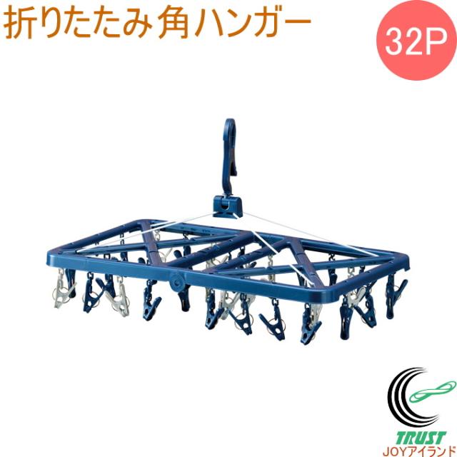 折りたたみ角ハンガー32P ネイビー 1個入 洗濯ハンガー ランドリーハンガー グリップハンガー 物干 物干し ハンガー 角ハンガー 折りたたみ式