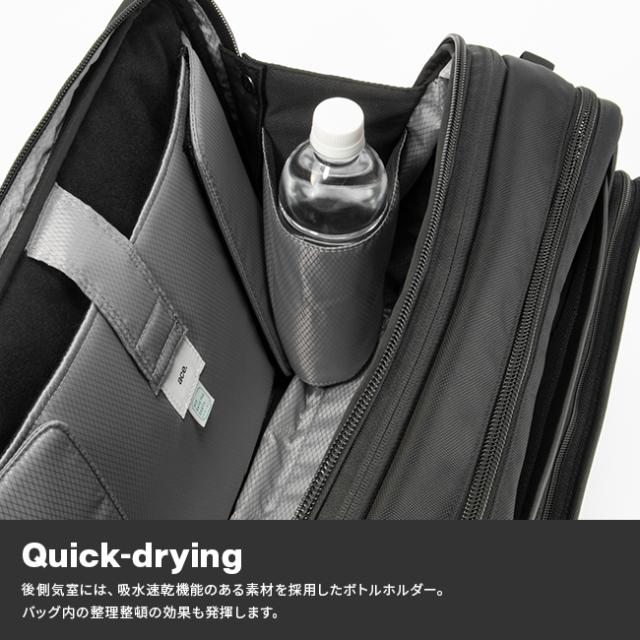 | ブランドを代表するEVLシリーズの新モデル ●新ハーネス形状 自社計測データをベースに、より多くのユーザーの身体にフィットして負荷を軽減するショルダーハーネスを開発。 ●14.0インチノートPC収納可能 マチ幅調整機能付き。 ●3WAYブリーフケース リュック・ショルダー・手持ちの3WAY仕様で、シーンに合わせた使い分けが可能。 ●エキスパンダブル 荷物の量に応じてマチ幅を広げ、容量の拡張が可能。 ●ショルダーベルト付き(パッド付き) 特許取得の、高いフィット感と肩への負担を軽減するパッドを採用したショルダーベルト付き。取り外し可能。 ●吸水速乾メッシュ素材 ボトルホルダーには、吸水速乾機能のある素材を使用。 ●バーテクト®ポケット 前ポケットには、抗ウイルス・抗菌加工の生地を使用。 ●オーガナイザーポケット 小物雑貨を収納できる内装ポケット。脱着可能なキーホルダー付き。 ●セットアップ機能 スーツケースなどのプルドライブハンドルに固定し、走行時にバッグのふらつきを防ぐ機能。 |