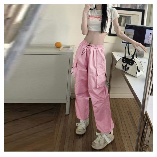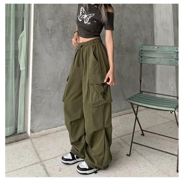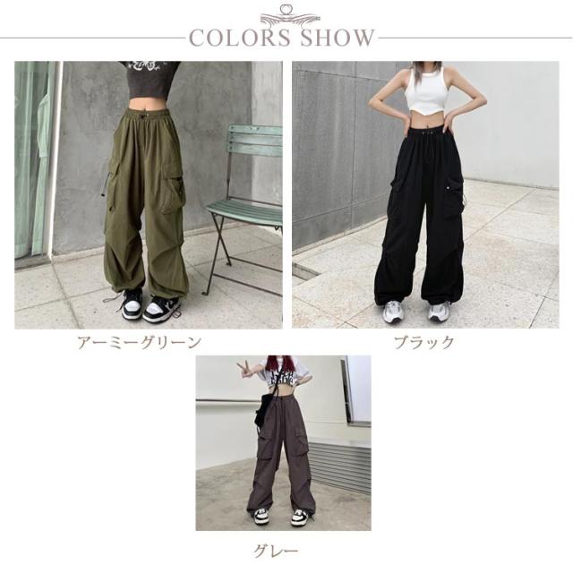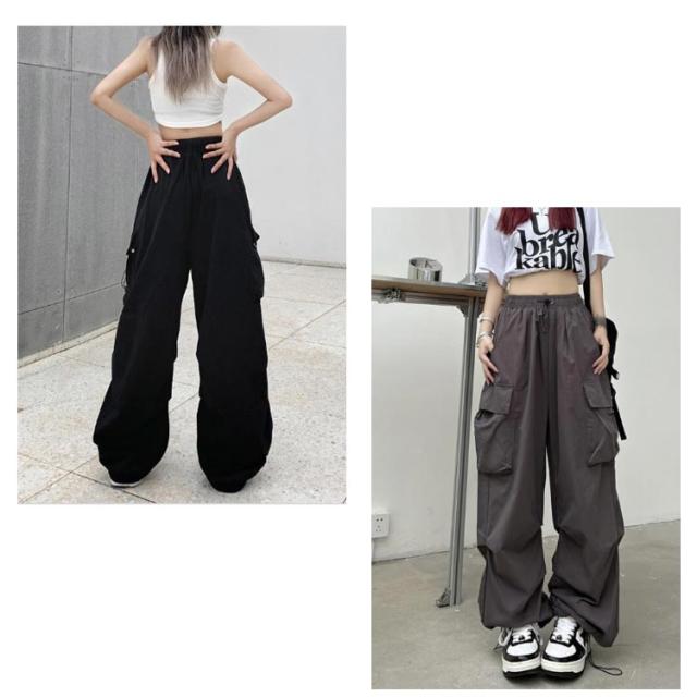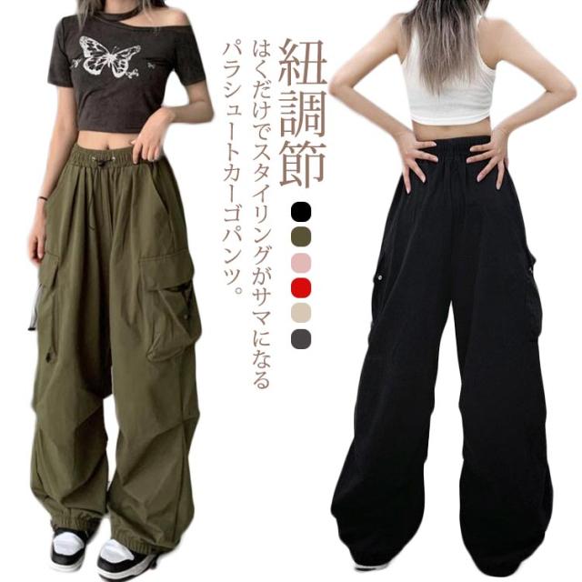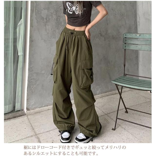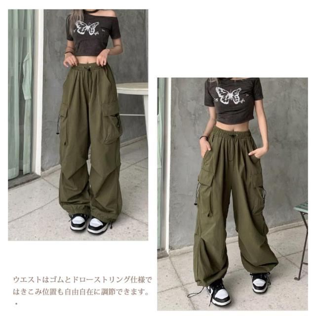 ウェストゴム レディース ヒップホップ ワークパンツ 紐調節 カーゴパンツ ボトムス サイドポケット ダンスパンツ カーゴパンツ おしゃれ ミリタリーパンツ パラシュートカーゴパンツ 作業着 カジュアル かっこいい ストリート トレンド 春