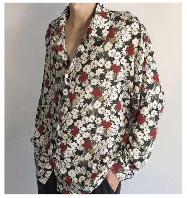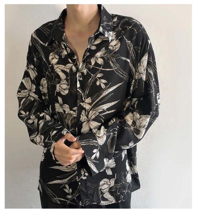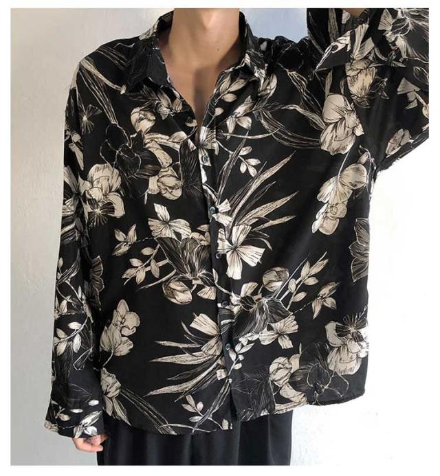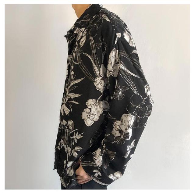 カジュアル ワイシャツ ストリート シャツ 柄 かっこいい メンズ 柄シャツ 派手 アロハシャツ ビッグシャツ 花柄 長袖 シャツ 大きいサイズ おしゃれ ゆったり 白 黒 総柄 総柄プリント 長そで きれいめ 韓国 キレイめ フォーマル