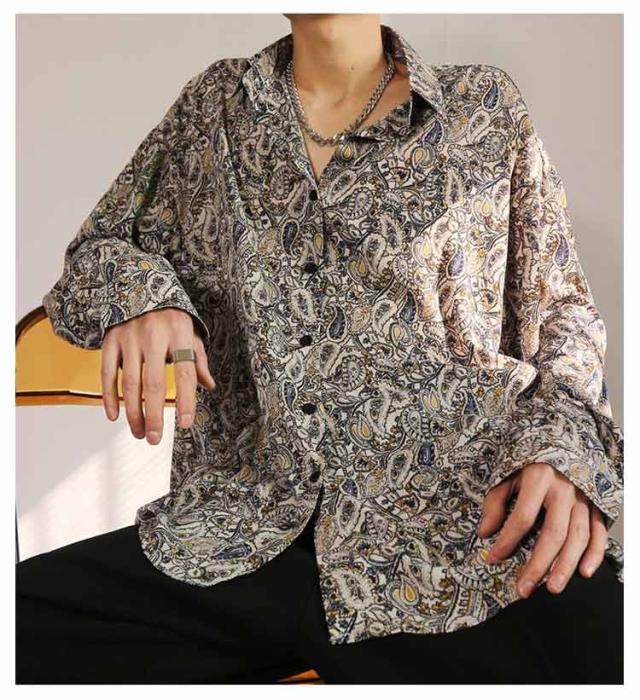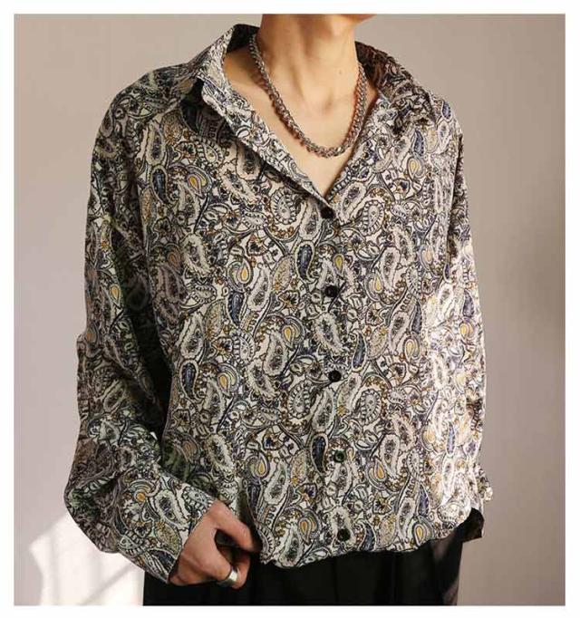 | M-3XL!落ち着いた総柄プリントがアクセントになりコーディネートを引き立たせてくれるシャツです さらりとした生地感で夏でも着心地よく着られます シンプルなレギュラーシャツなので着回ししやすい 大人な雰囲気漂うヴィンテージ感あるデザイン | |