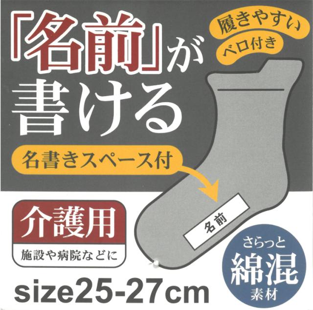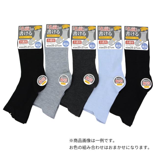 名前が書ける 介護 ソックス メンズ 紳士 靴下 片手で履ける 5足 セット 無地 高齢者 シニア 介護用靴下 口ゴムなし 【メール便送料無料】 ゆるい ゆったり しめつけ解消 綿混 快適素材 クルー丈 取っ手付き お年寄り 程よい厚み オールシーズン対応 agesugi_sfa