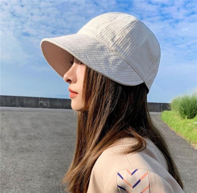 長いつばでお顔をすっぽりと覆うので、日差しもしっかりとガードします。