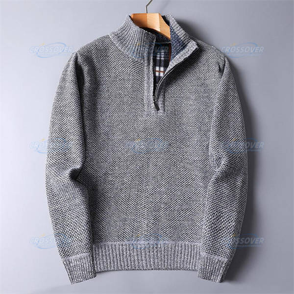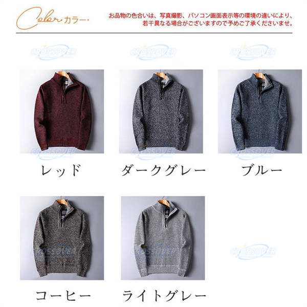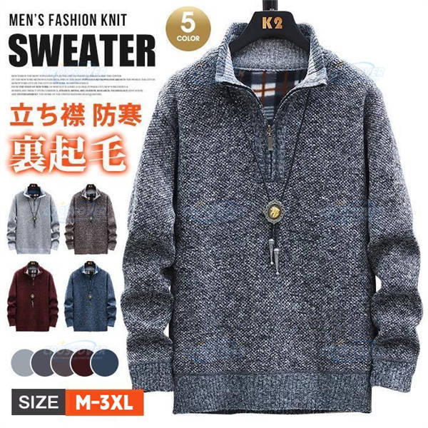 ニットセーター メンズ 長袖 ニット セーター ファスナー 立ち襟 厚手 裏起毛 防寒 トップス 無地 カジュアル シンプル