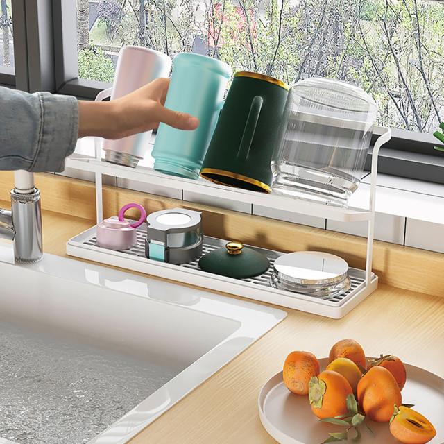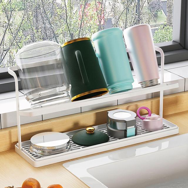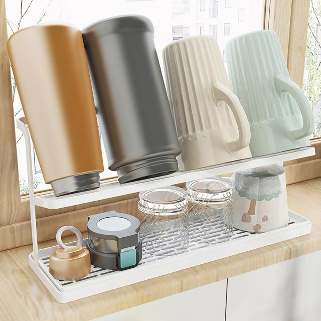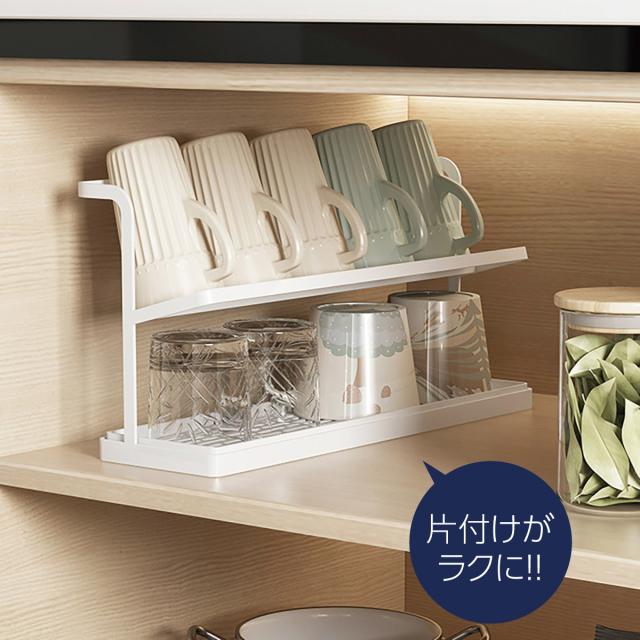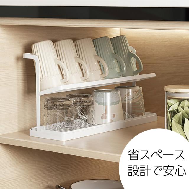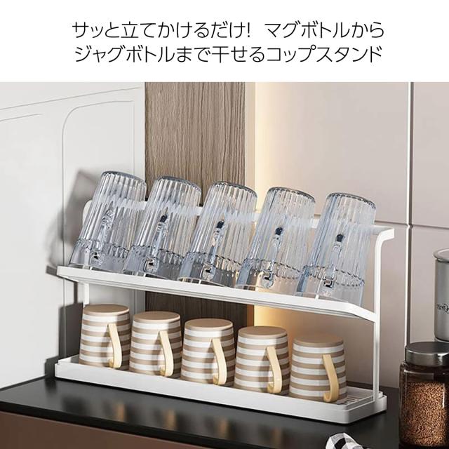 コップスタンド 2段式 水切りラック カップホルダー 食器 水切りかご シンプル ワイド ジャグボトルスタンド 水筒スタンド キッチン 収納ラック ボトルスタンド キッチン収納 台所ポータブル カップトレー ホワイト 新生活 cup-stand agesugi_snk