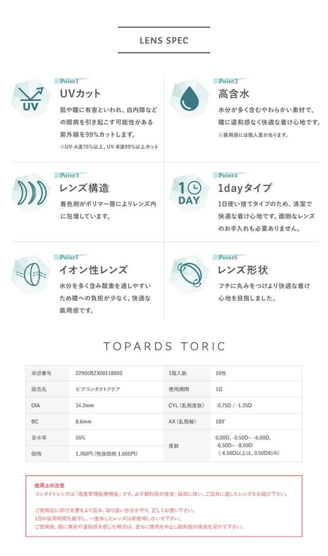 トパーズ トーリック TOPARDS TORIC 2箱 (1箱10枚入)ポスト便 送料無料 1日使い捨て 乱視用 カラーコンタクト 指原 莉乃