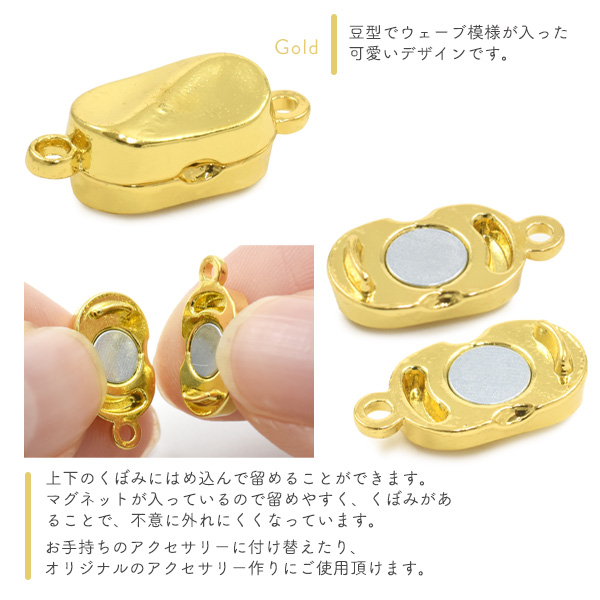マグネット式 クラスプ 豆型 17mm ゴールドカラー 磁石式留め具 ネックレス ブレスレット アンクレット 留め具 アクセサリーパーツ 素材 手作りアクセ パーツ レトロ 手芸 工作 修理 ハンドメイド用素材 手作りアクセサリー パーツ