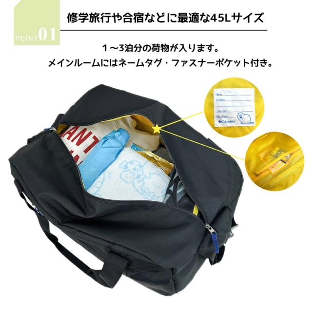 【商品レビュー記入で+5%】コロンビア ボストンバッグ Columbia 1泊 2泊 3泊 キッズ ジュニア 学校 撥水 子供用 子供 子ども 女の子 男の子 高学年 合宿 旅行 小学校 男子 女子 2way PU8703 宿泊行事 スポーツ 大容量 修学旅行 お泊まり 45L ボストンショルダー 遠征