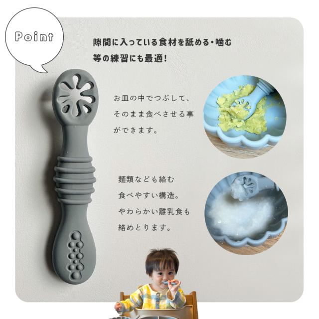 お皿の中でつぶすことが可能で、そのまま食べさせる事が可能です。