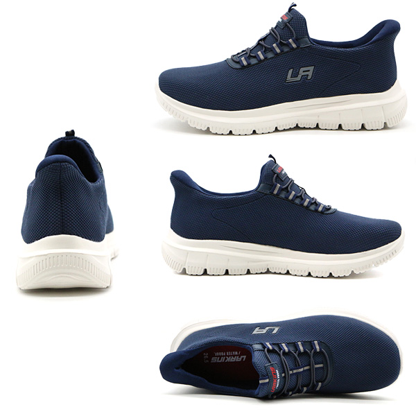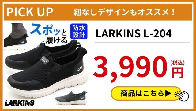 スニーカー メンズ スリッポン 靴 黒 ブラック 紺色 ネイビー 防水 雨 雨の日 履きやすい ハンズフリー 軽量 軽い 歩きやすい 疲れない 厚底 かっこいい おしゃれ ランニングシューズ 紐なし 通学 通勤 ラーキンス LARKINS L-203 新作