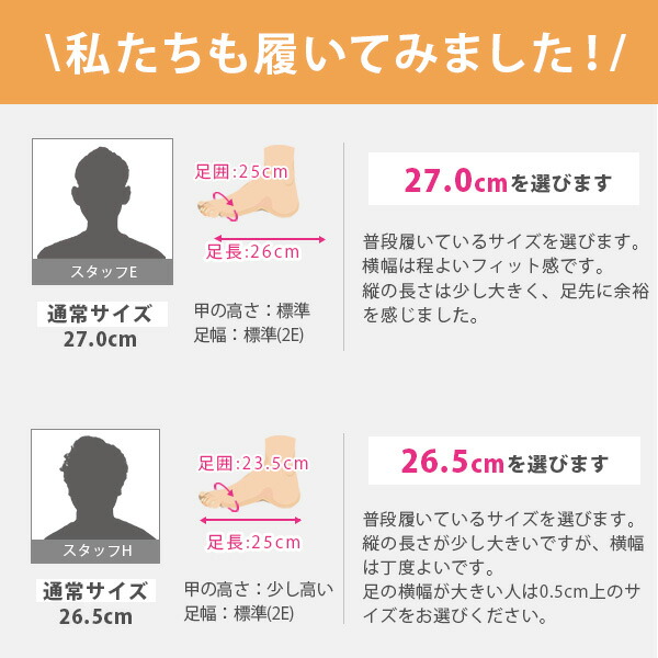 取り扱いサイズ:25cm 25.5cm 26cm 26.5cm 27cm 28cm