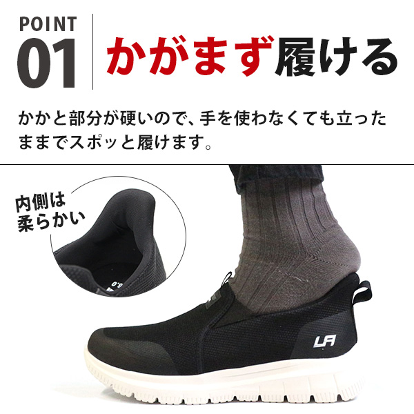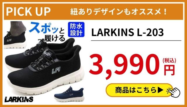 メンズ スニーカー スリッポン 靴 黒 ブラック 灰色 グレー 防水 雨 雨の日 履きやすい ハンズフリー 軽量 軽い 歩きやすい 疲れない 厚底 かっこいい おしゃれ ランニングシューズ 紐なし 通学 通勤 ラーキンス LARKINS L-204 新作