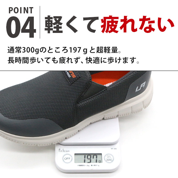 通常300gのところ197gと超軽量。長時間歩いても疲れず、快適に歩けます。