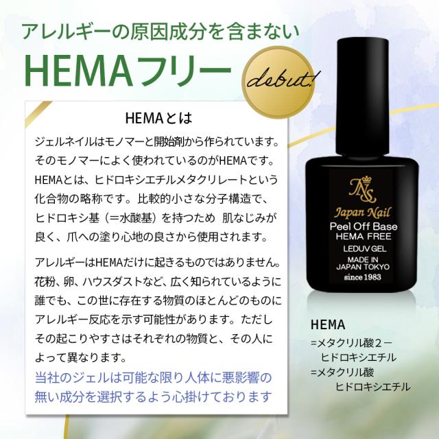 ヘマフリーピールオフ ベースジェル 安心の日本製 剥がすだけでジェルネイルオフが出来るベースコート HEMA FREE ヘマフリー HEMAフリージェル LEDUV対応ジェル
