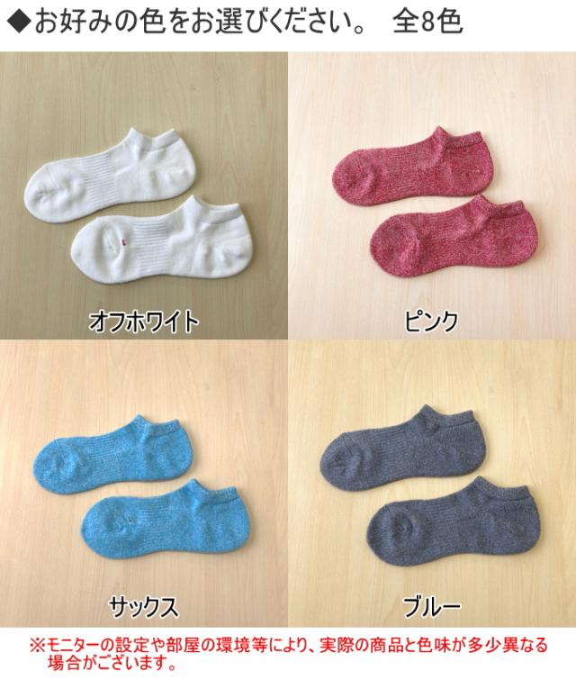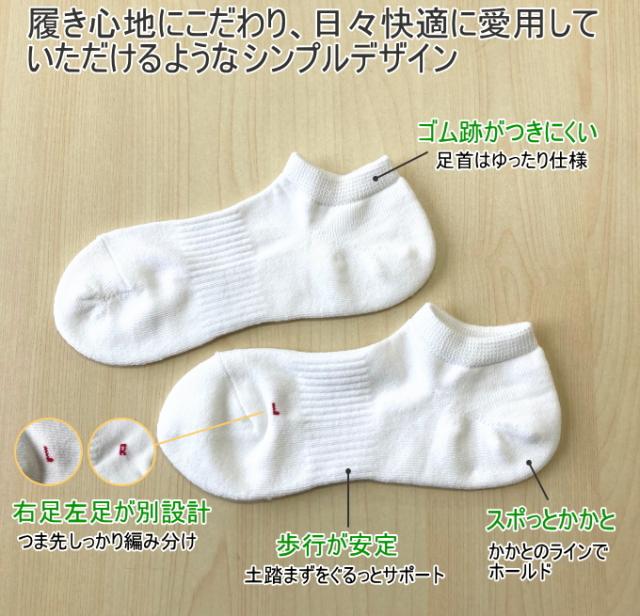 | 特徴 | 履き心地にこだわり、日々快適に愛用していただけるシンプルデザイン。 ゴム跡がつきにくい足首ゆったり仕様。 右足左足が別設計。「R」「L」の表示あり。 つま先や踵をしっかりホールド。 カラーは全8色。お好みの色をお選びください。 ■ネコポス(メール便:全国一律300円)での配送もお受けします。 【ネコポス便の条件とご案内】 メール便を指定してお買い上げの方に限りますので、配送方法を選択していない場合は宅配便(通常送料)となりますのでご注意ください。 ネコポス対応品以外もお買い上げの場合、ネコポスを選択することができなくなるため、通常の宅配便での手配となります。 大きさの都合上本商品は「2個」までネコポス対応となりますので、3個以上お買上げの場合はネコポスの複数個口か通常の宅配便で手配します。 ネコポスの送料はシステムの都合上「数量×送料(300円)」で自動計算されますが、ショップ側でいくつ入るか計算して送料を修正いたします。 『ネコポス(メール便)についての補足』という画像に詳細を載せておりますので、ご注文前に必ずご確認ください。 送料無料条件をクリアした場合、まとめて宅配便で出荷させていただくことがございます。(どうしてもネコポスがいいという場合はお受けすることもできますが、ネコポス複数個口分の送料をいただきます。) ※住所を元に配達するため、住所不備による配達誤りなどについてはご対応できません。 ※ネコポスは転送ができませんので、ご注文を確定する前に必ずお届け先住所に間違いがないかご確認くださいますようお願いいたします。 ※手渡しではなく投函となるため、郵便受けがない場所へはお届けできません。 ※ネコポスは日時指定ができませんので予めご了承くださいませ。 ※ネコポスの詳細はヤマト運輸ホームページをご覧ください。 ■その他の靴下はこちら↓ 靴下 |