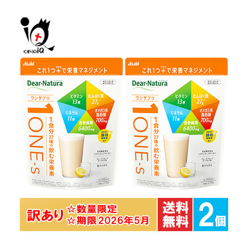 訳あり ディアナチュラ ワンサプリ グレープフルーツヨーグルト味 270g(5回分)×2個セット【ディアナチュラ】【アサヒグループ食品】【使用期限2026年5月】1食分27種の栄養素が摂れる飲むサプリメント