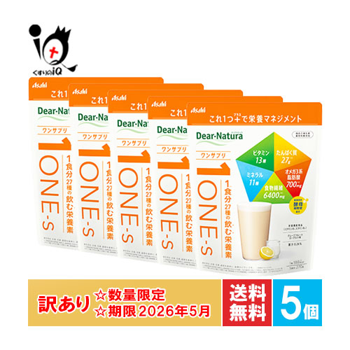 訳あり ディアナチュラ ワンサプリ グレープフルーツヨーグルト味 270g(5回分)×5個セット【ディアナチュラ】【アサヒグループ食品】【使用期限2026年5月】1食分27種の栄養素が摂れる飲むサプリメント