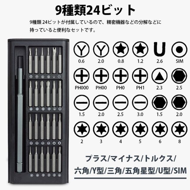 9種類 24ビットが付属しているので、精密機器などの分解などに持っていると便利なセットです。