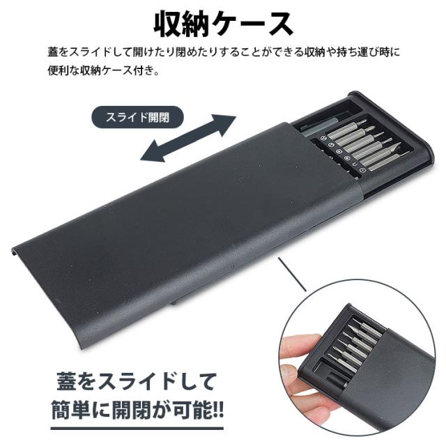 9種類のビットが付属しているので、精密機器などの分解・修理に便利です。