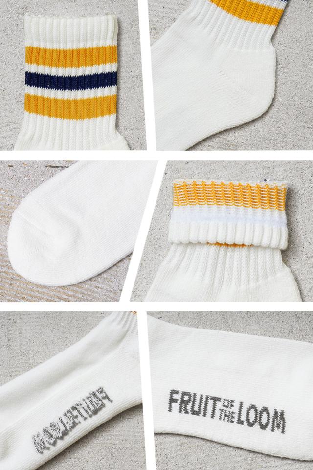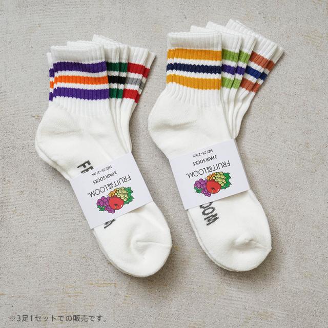 FRUIT OF THE LOOM フルーツオブザルーム 70078600 / 70078800 カラフル ライン クオーター ソックス 3足セット【T】|メンズ レディース 靴下 厚手 ライン
