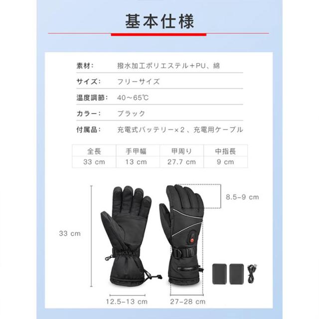 電熱グローブ バイク手袋 防寒手袋 ヒーターグローブ メンズ手袋 発熱 防水 防風 保温 3段階調温 長時間作動 防寒対策 即暖 省エネ バイク 耐風撥水 男女兼用