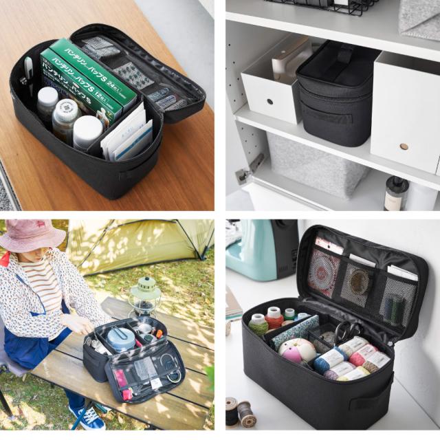 仕切りとポケットで細かく仕分けができる!収納力抜群で軽くて持ち運びやすい救急バッグ。大きな開口部で全体を見渡せて探す手間が省けます。