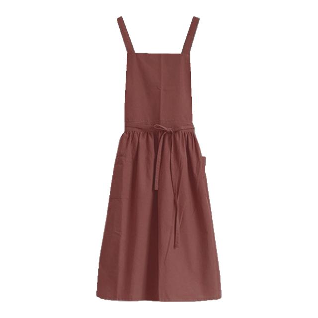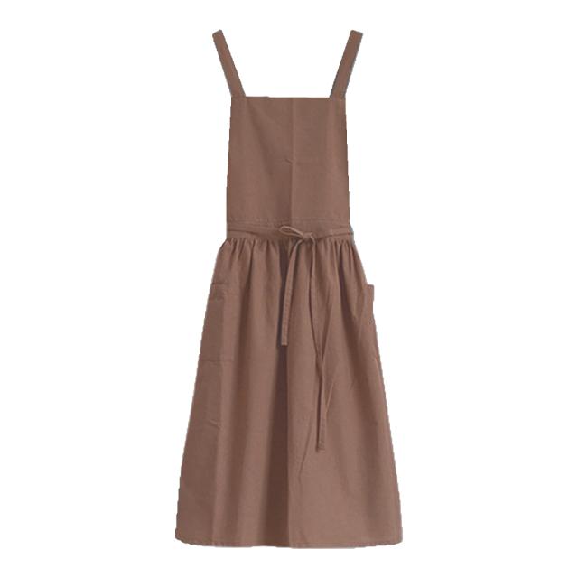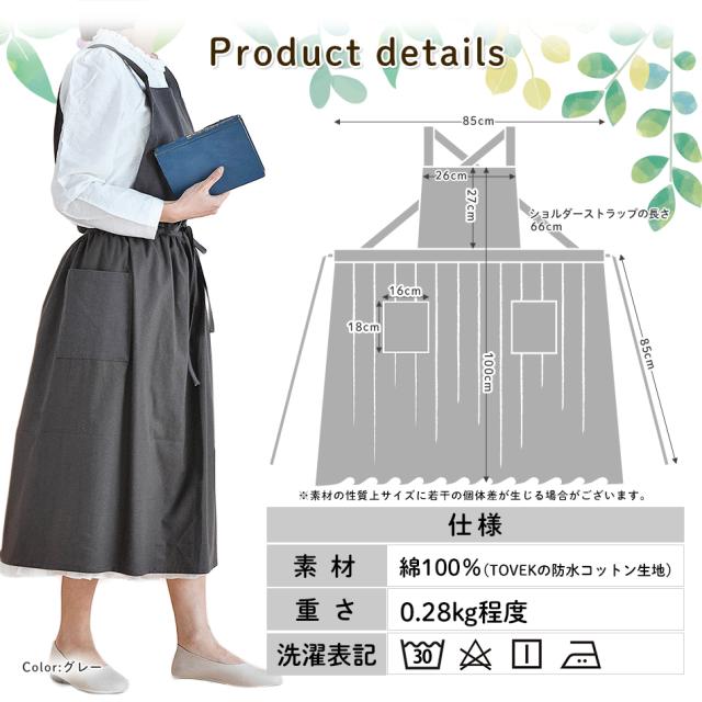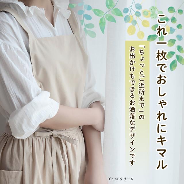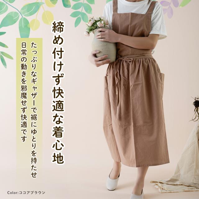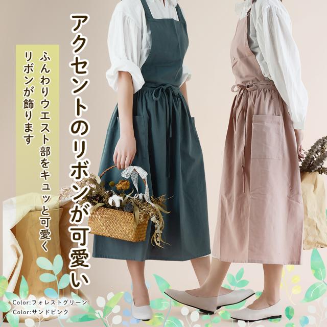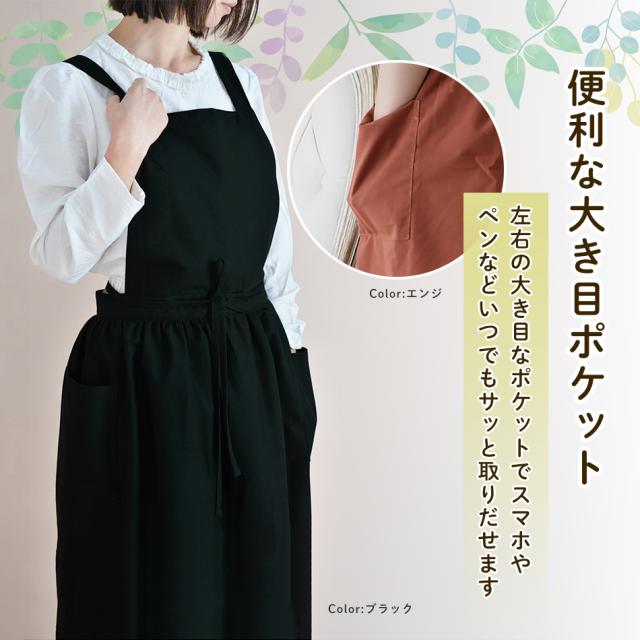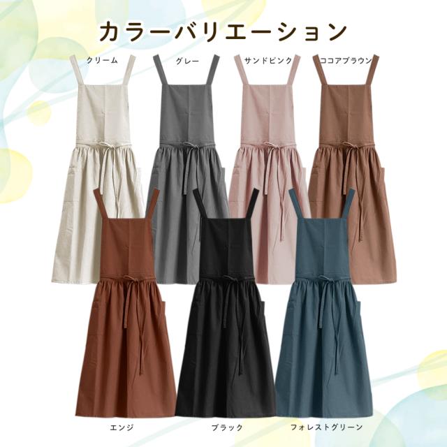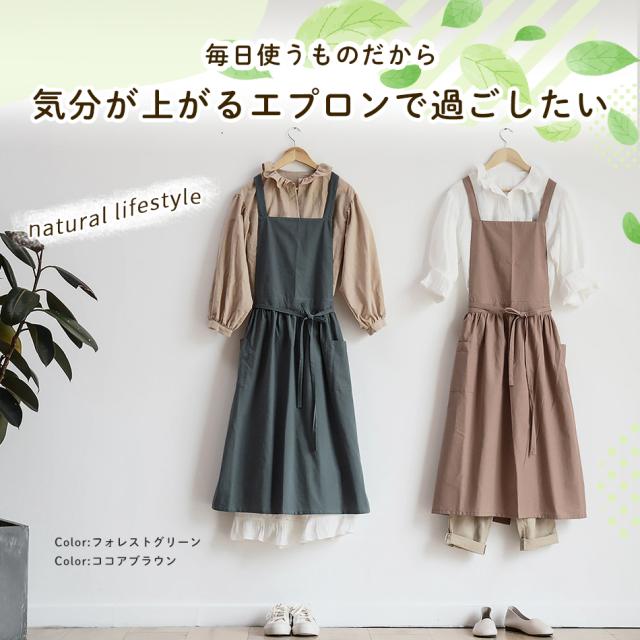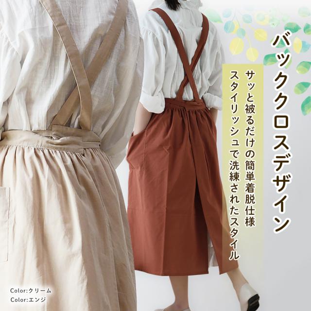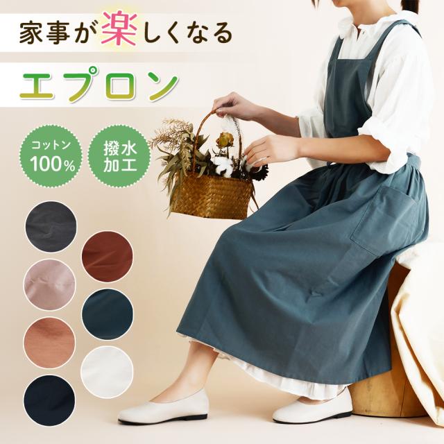 エプロン おしゃれ ワンピース シンプル 撥水 バッククロス 家事 保育士 大人 かわいい かぶり ポケット 綿 100% 北欧 無地 ギフト