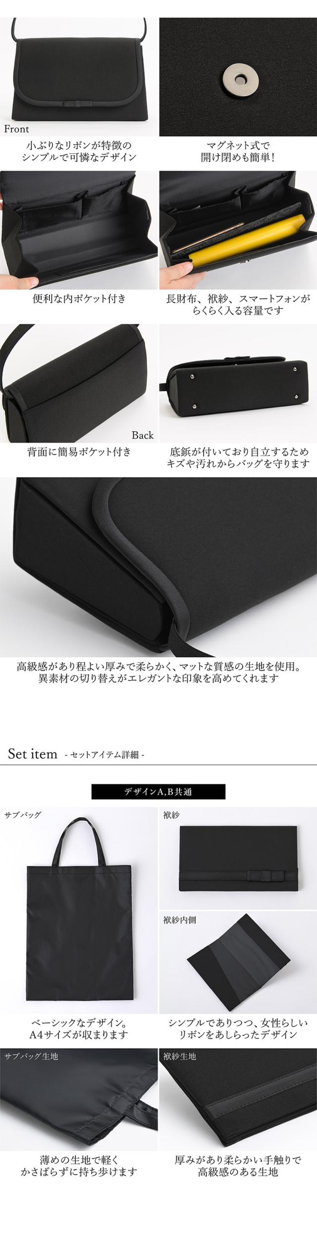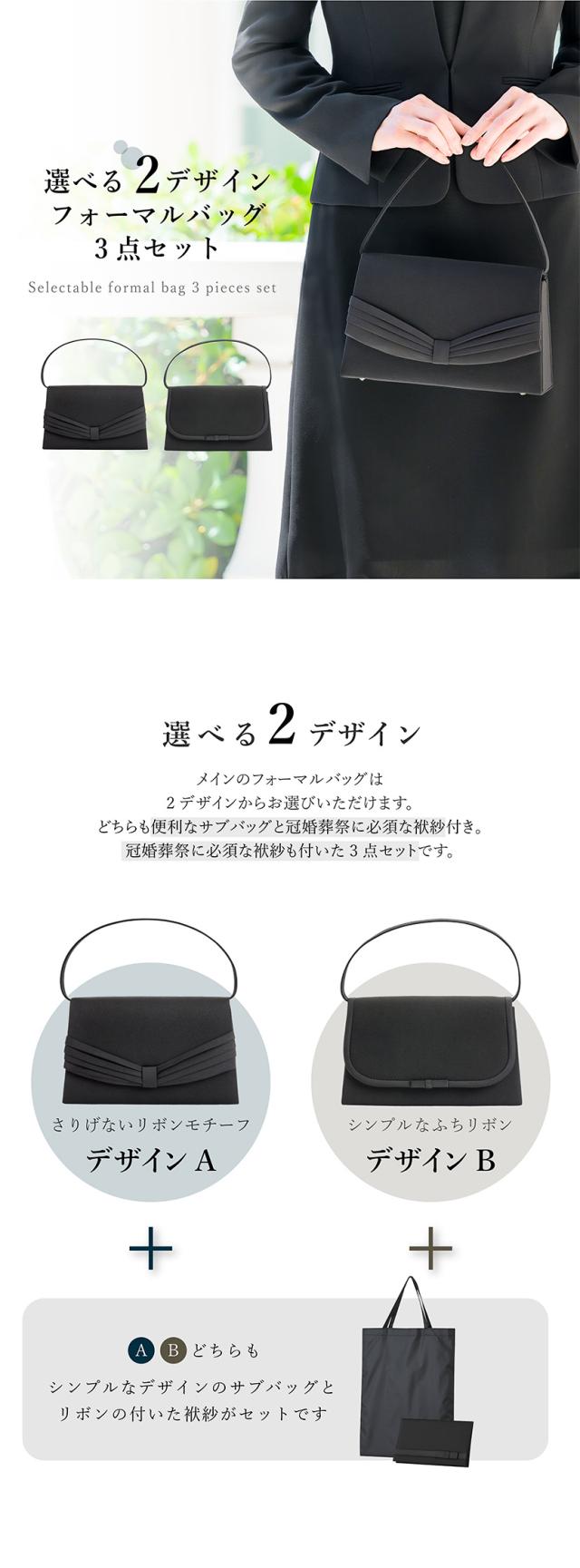 フォーマル バッグ レディース 黒 2デザイン フォーマルバッグ 3点 セット サブバッグ 袱紗 ふくさ ブラック リボン シンプル 春 夏 秋 冬 ブラックフォーマル 葬式 お通夜 法事 法要 冠婚葬祭 弔事 卒園式 ママ 母親 女性