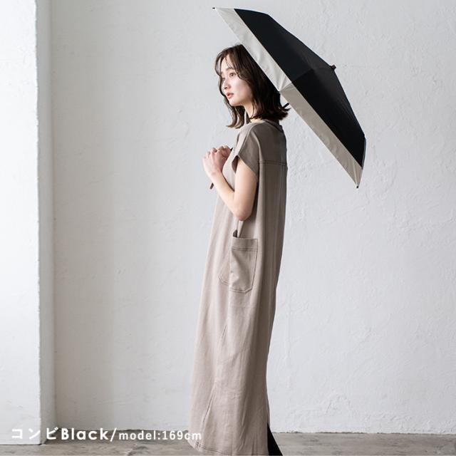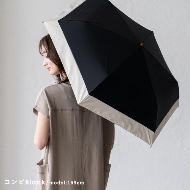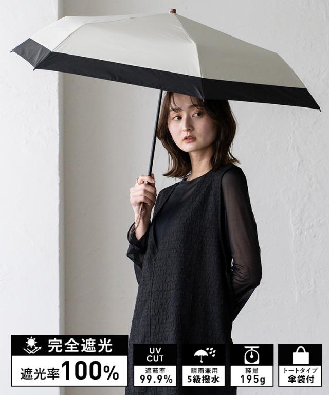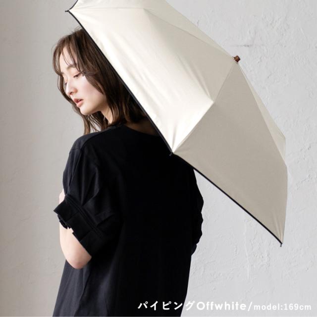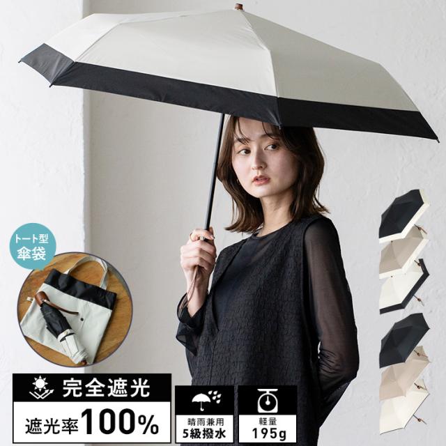 日傘 折りたたみ 完全遮光 超軽量 195g 親骨50cm 遮光率 UV遮蔽率 1級遮光 晴雨兼用傘 遮光傘 UVカット コンビ 配色 パイピング トート型傘袋 グラスファイバー 無地 pru-30178z【aroco/アロコ】 プレゼント