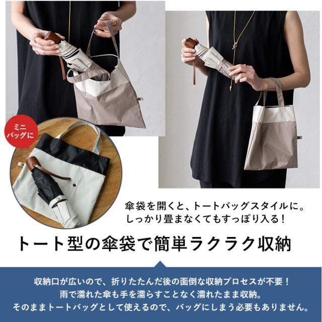 傘袋はトートバッグ型で、折りたたんだ後の手間な収納作業をカット!