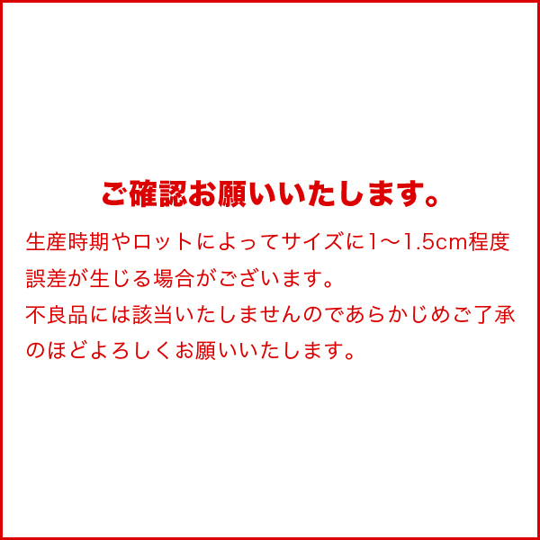 生産過程においてサイズに1〜2cmほど誤差が生じる場合がございます。あらかじめご了承下さいませ。