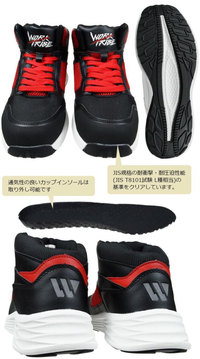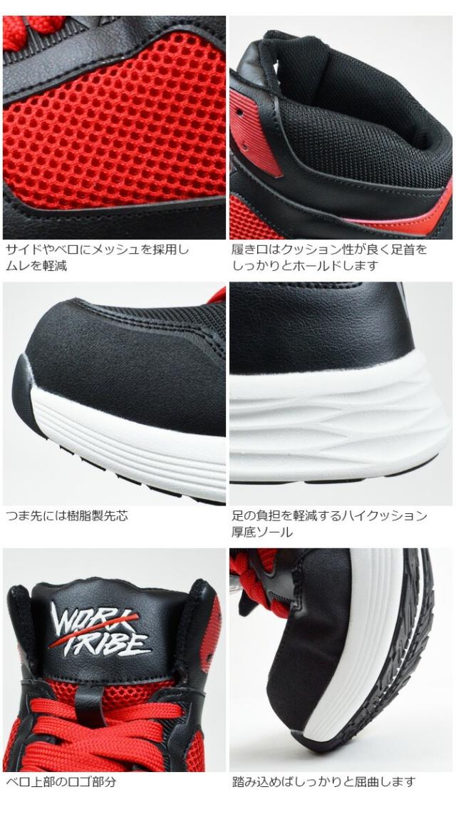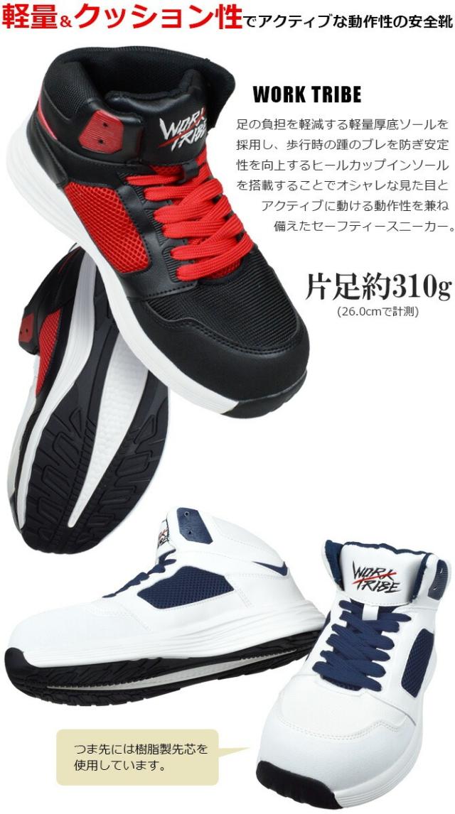 安全靴 スニーカー WORK TRIBE セーフティースニーカー ワークトライブ WT-1000 WT-1010 ミッドカット ハイカット ミドルカット メンズ おしゃれ 耐滑底 樹脂先芯 超軽量 紐 作業靴