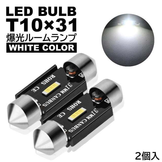 ルームランプ T10×31mm LED 爆光 1860CSPチップ ナンバー灯 白 ホワイト 6000K 12V LED電球 室内灯 フェストン球 2個