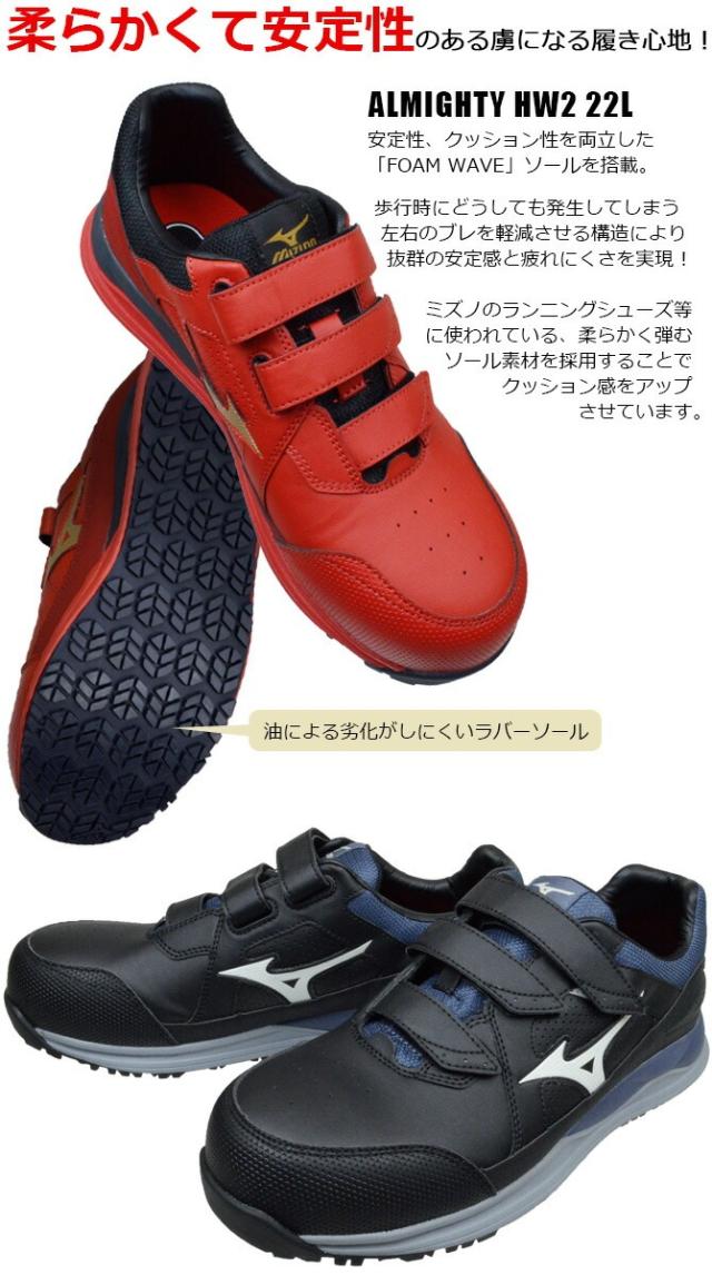安全靴 ミズノ MIZUNO オールマイティ ALMIGHTY HW2 22L F1GA2401 ローカット メンズ レディース マジックテープ おしゃれ ミズノエナジー ミズノウェーブ ワーキング プロテクティブスニーカー 屈曲性 耐油 安全スニーカー 作業靴