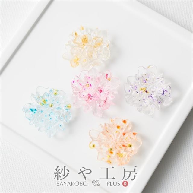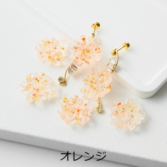 穴は開いていないので、ピアスやイヤリング、ヘアクリップなどのパーツに貼り付けるだけで簡単にかわいいお花のアクセサリーが作れちゃう!