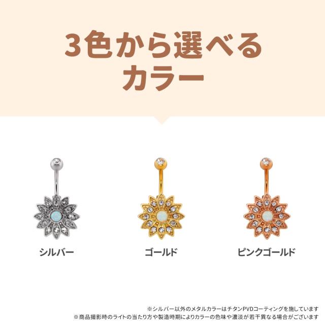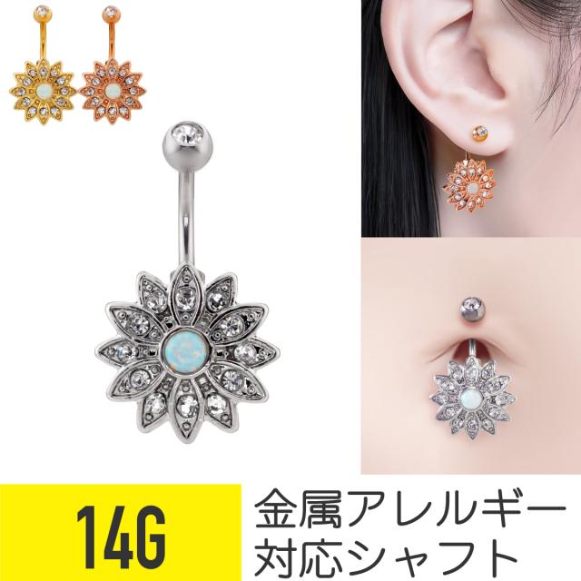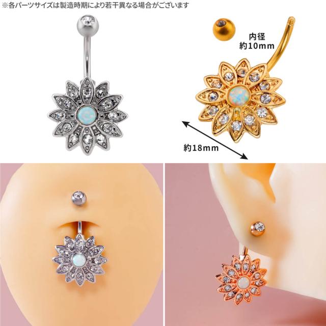 オパール ジュエル フラワー バナナバーベル へそピアス 14G サージカルステンレス ジルコニア ヘリックス 軟骨ピアス ボディピアス 花