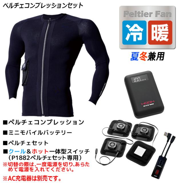 【即日発送】HOOH 村上被服 夏冬兼用 冷暖 対応 ペルチェコンプレッションセット PC222 フルセット ペルチェプレッション&バッテリー&ペルチェセット 快適ウェア フルハーネス対応 吸汗速乾 熱中症対策 猛暑 作業服 手洗い可能
