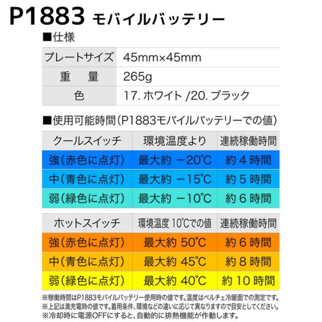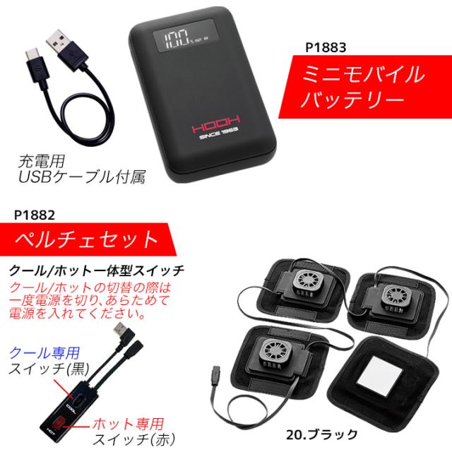 ペルチェコンプレッションセットには ペルチェコンプレッション(P115)・モバイルバッテリー(P1883)・ペルチェセット(P1882)