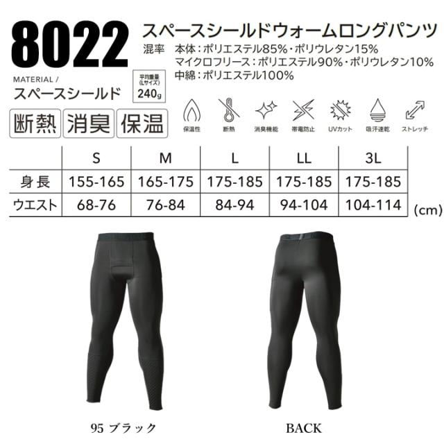 【即日発送】TSデザイン 防寒インナー レギンス 2025AW 8025 スペースシールドウォームタイツ 防寒 断熱 保温 消臭 吸汗速乾 静電 アンダータイツ スペースシールド素材 次世代素材 秋冬 移動着 自転車 バイク アウトドア 作業服 作業着 TSDESIGN 藤和
