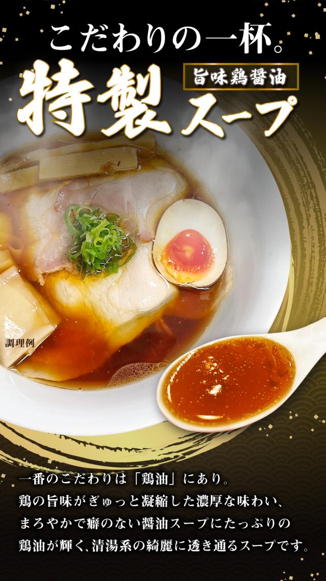| 【麺】小麦粉(国内製造)、食塩/酒精、かん水、貝Ca、クチナシ色素、加工でん粉、(一部に小麦を含む) 【スープ】しょうゆ(国内製造)、チキンオイル、チキンエキス、食塩、チキンガラスープ、たん白加水分解物、砂糖、昆布エキス/調味料(アミノ酸等)、酒精、カラメル色素、酸味料、増粘剤(キサンタンガム)、酸化防止剤(ビタミンE)、(一部に小麦・大豆・鶏肉を含む) |