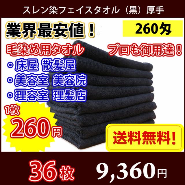 【送料無料】 36枚セット スレン染めフェイスタオル 黒 260匁 厚手 / 床屋 散髪屋 美容室 美容院 理容室 理髪店 毛染め 業務用 ブラック タオル フェイス スレン染め まとめ買い