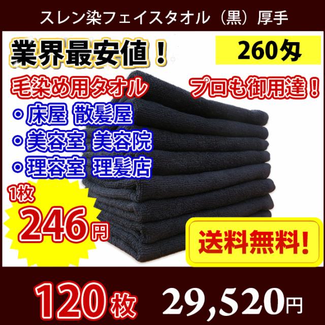 【送料無料】 120枚セット スレン染めフェイスタオル 黒 260匁 厚手 / 床屋 散髪屋 美容室 美容院 理容室 理髪店 毛染め 業務用 ブラック タオル フェイス スレン染め まとめ買い