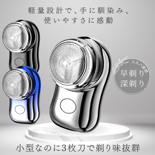 電動シェーバー 3枚刃 メンズ 男性用 小型 メンズシェーバー 髭剃り 電動 ミニ コンパクト 電気シェーバー 男性 シェーバー 深剃り 回転式 usb充電式 電気カミソリ 充電式 ヒゲソリ 自動研磨機能 携帯便利 出張 旅行 アウトドア 軽量