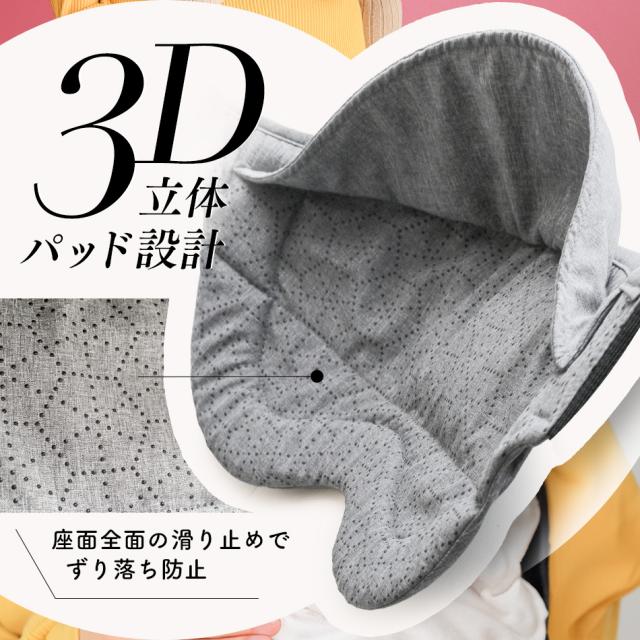 | コペルタ の スリング はお子様が快適に過ごせるように、パッド部分の構造にこだわりました。従来の スリング では一枚板のパッドにそのまま乗せるだけなのに対し、当社の スリング では、前後にガバッと開いて包みこむようにおしりに乗せることができ、より安定感のある スリング に仕上げました♪ | 滑り止め加工付き |