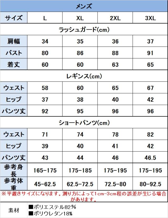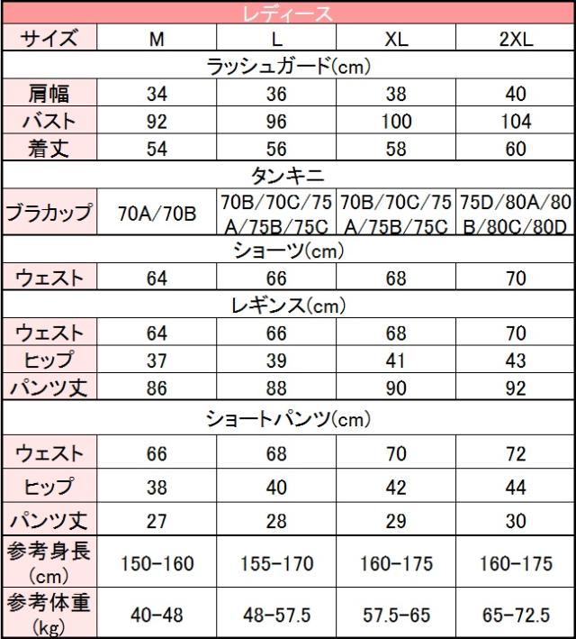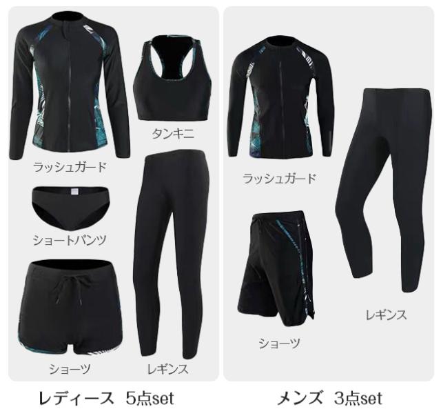 セット内容 レディース5点セット:ラッシュガード+タンキニ+ショーツ+ショートパンツ+レギンス メンズ3点セット:ラッシュガード+ショートパンツ+レギンス