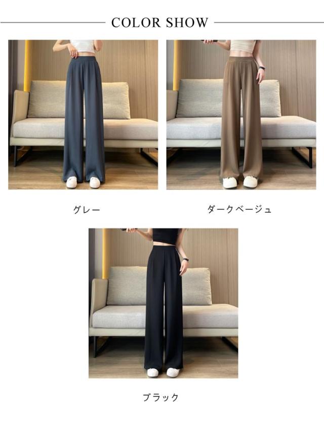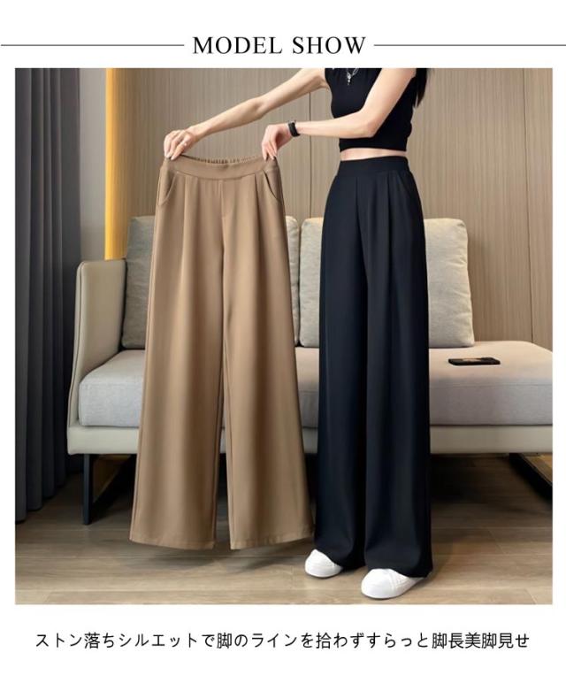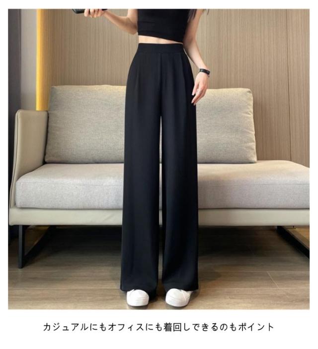 美脚 スーツパンツ ストレート 春 レディース 韓国ファッション ワイドパンツ ハイウエスト ボトムス 夏 薄手 着痩せ ウエストゴム ロングパンツ 通勤 オフィス スラックス スラックスパンツ 脚長 おしゃれ ゆったり 大きいサイズ 送料無料