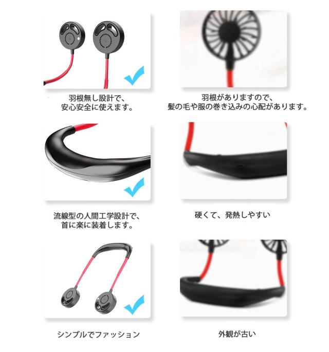 - 首周りより顔近くに風が当たる感じで私には涼しいと感じた花の水やりに使用してます 今回始めての購入で他の物とは比べられないけど重さはヘッドフォンくらいかな音は扇風機の弱ぐらい?今のところ気にいってます