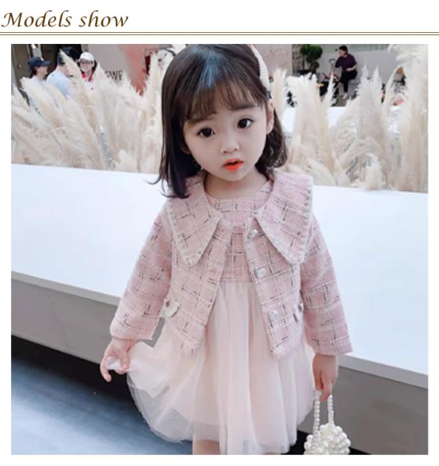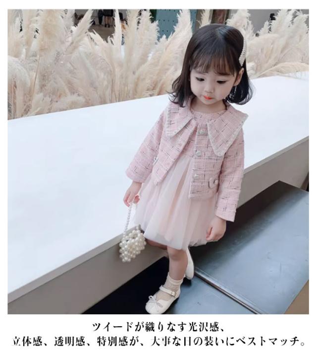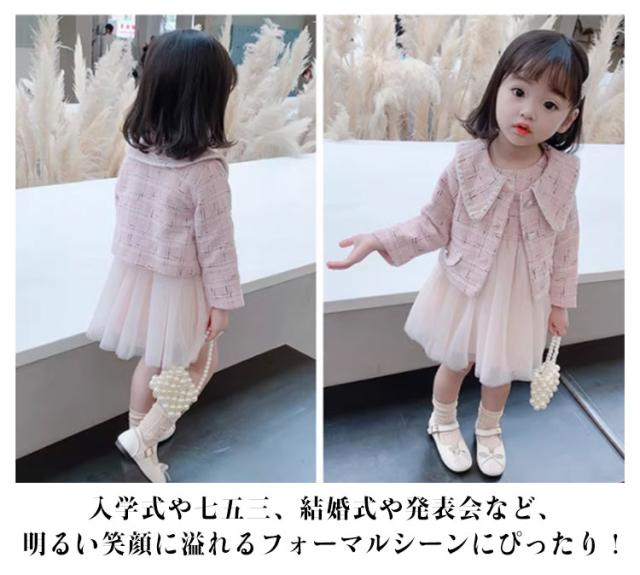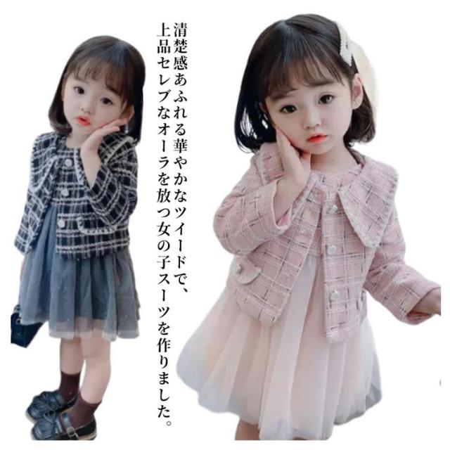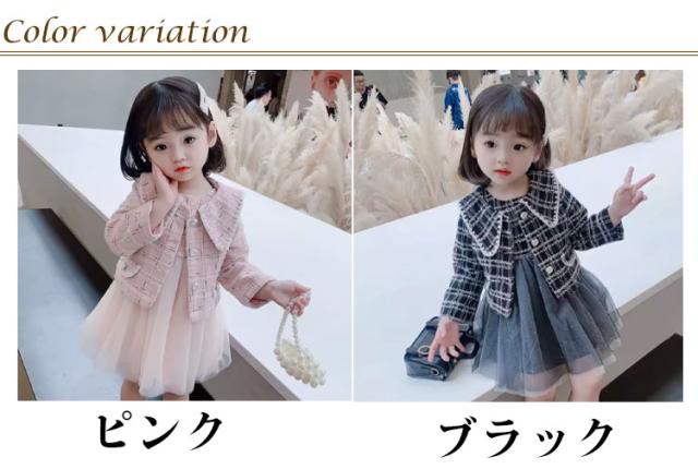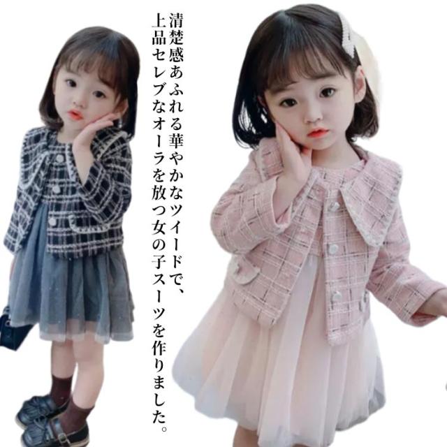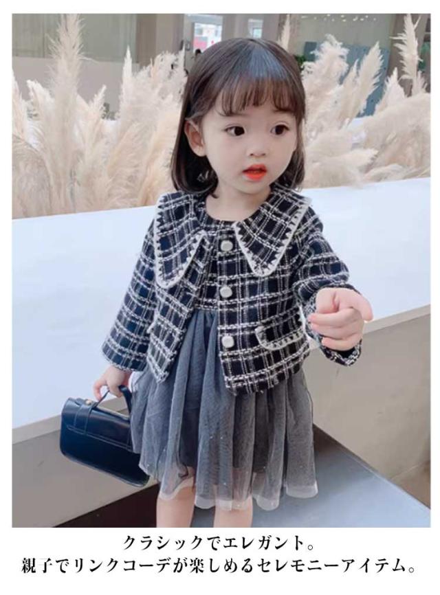 キッズ 子供服 入園式 ジャケット チュールワンピース 2点セット 入学式 卒園式 セットアップ ツイードジャケット ツイード 長袖 チェック 子供 ツイードワンピース ツイードワンピ チュールワンピ 女の子 結婚式 春 ゆったり 可愛い