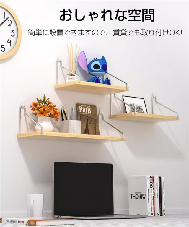 メーカー希望小売価格: 7,980円ウォールシェルフ 3枚セット 賃貸OK 壁掛け 40cm 50cm 60cm 取り付け簡単 石膏ボード 木製 飾り棚 収納棚 吊り